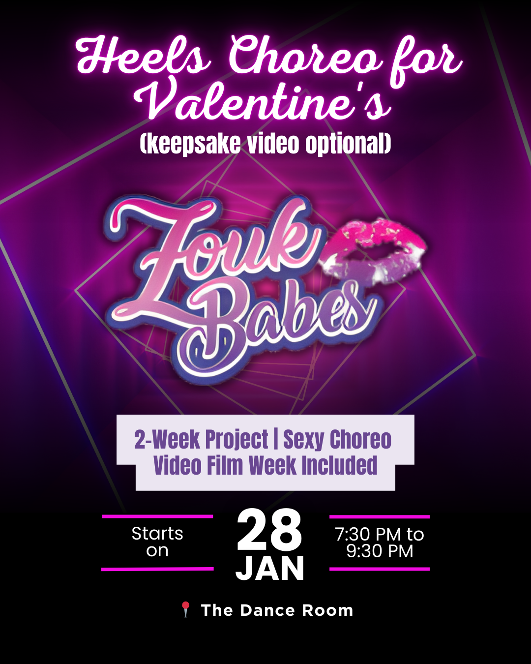 Join our Valentine’s Choreo Project! This is not a Zouk choreo, we’re diving into heels - fusion style.